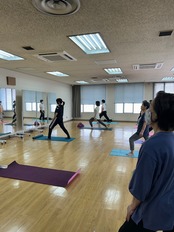 持ち物 タオル、飲み物、ヨガマットもしくはバスタオル(床に敷きます)