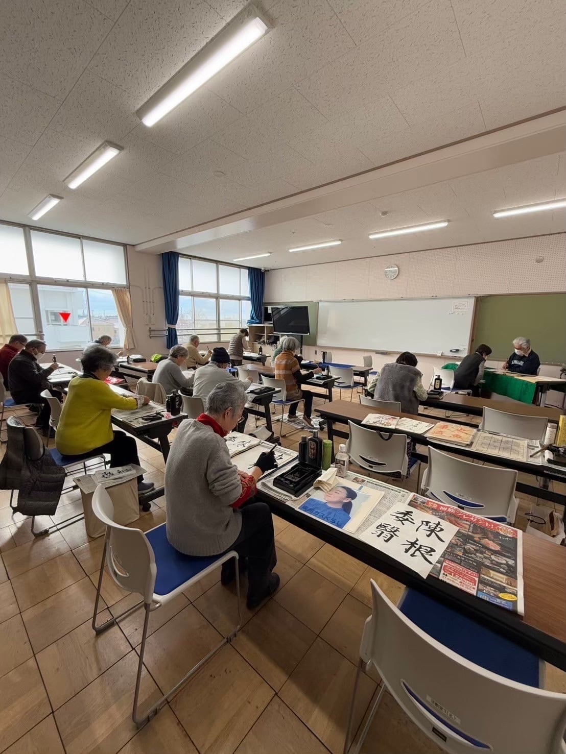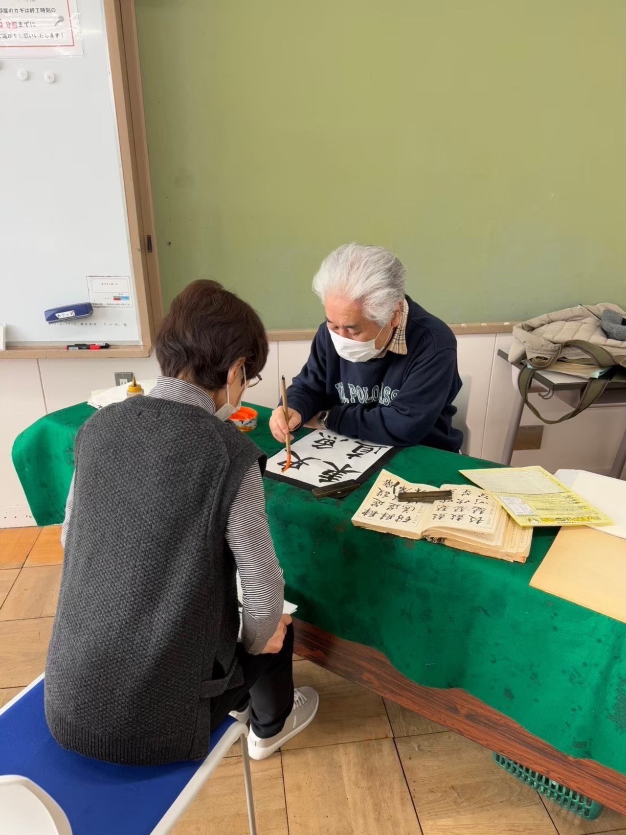 持ち物 下敷き、筆、墨液、書道紙、ウェットティッシュまたはぞうきん、新聞紙(机用、作品をはさむ用)