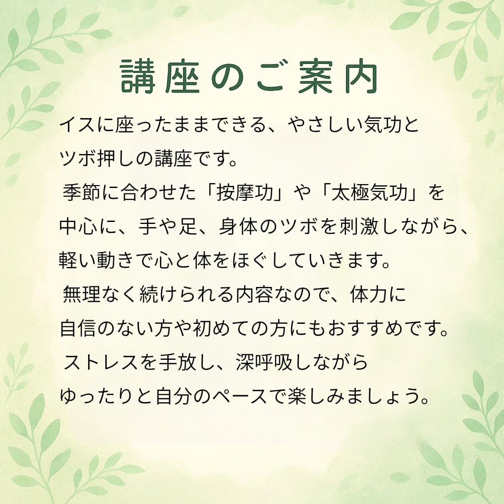 89. イスでゆったり気功とツボ